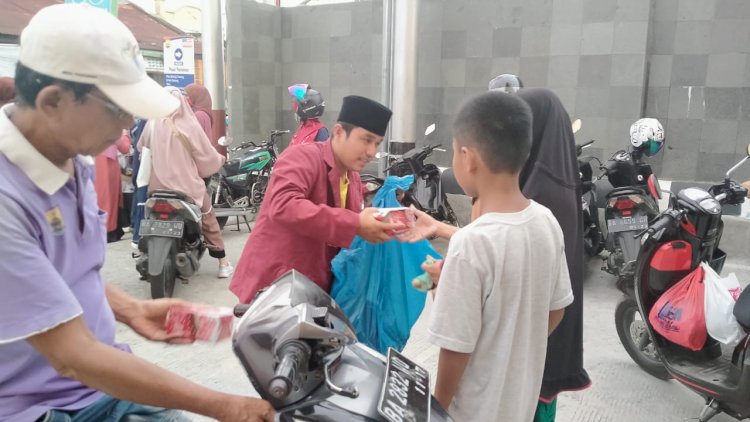 Pimpinan Komisariat Ikatan Mahasiswa Muhammadiyah (PK IMM) Ar Sutan Mansoer STIT Syekh Burhanuddin Pariaman dan Jenderal Soedirman STIE SB Pariaman membagikan ratusan paket berbuka di pusat kota Pariaman, Jum'at (7/5/2021)