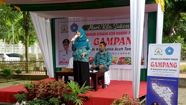 Aceh Tamiang [Aceh]. Rita Syntia, ST, MM Ketua Tim Penggerak Pemberdayaan Kesejahteraan Keluarga TPPKK Kab. Aceh Tamiang menyampaikan "Untuk mendukung program Pemerintah Aceh perlu adanya upaya Pemerintah Daerah untuk mensosialisasikan Gerakan Aceh Mandiri Pangan (GAMPANG) kepada masyarakat, agar keluarga bisa memanfaatkan perkarangan rumah untuk meningkatkan ekonomi keluarga dengan menanam sayur dan budidaya ikan air tawar. Untuk memperkuat ketahanan pangan harus melibatkan seluruh komponen masyarakat sehingga menjadi komitmen bersama, tata kelola terpadu, terarah, dan terukur untuk menjamin ketersediaan kebutuhan pokok terutama dalam masa pandemi Covid-19" Ucapnya