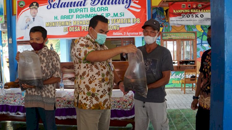 BLORA,REDAKSIDAERAH - Bupati Blora, H. Arief Rohman, S.IP., M.Si., pada hari Selasa (3/8/21) melaksanakan monitoring atau peninjauan pelaksanaan program Kuliah Kerja Nyata (KKN) Tematik yang dilakukan Mahasiswa Institut Pertanian Bogor (IPB) di Desa Pengkoljagong, Kecamatan Jati.