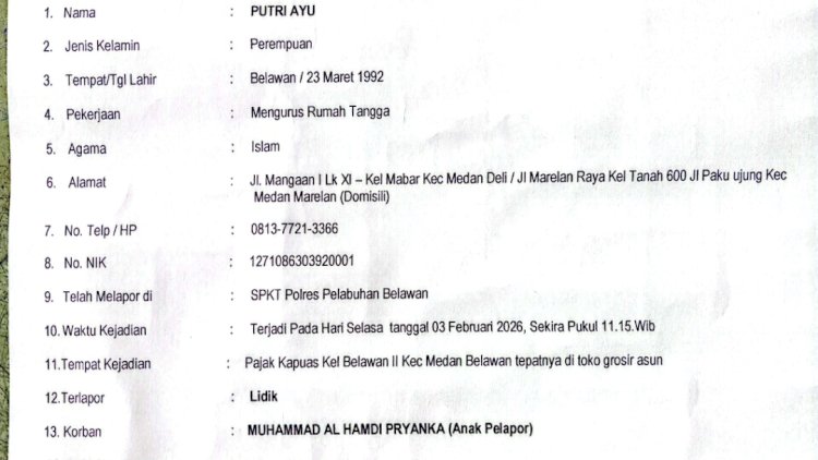 Belawan, Redaksidaerah.com - Sudah berlangsung beberapa hari usai membuat laporan LP/B/138/II/2026/SPKT/Polres Pelabuhan Belawan/Polda Sumatera Utara tertanggal Rabu, 04 February 2026 sekitar pukul 09.30 WIB, namun pelaku kekerasan terhadap anak di bawah umur belum juga ditindaklanjuti oleh pihak Polres Pelabuhan Belawan.