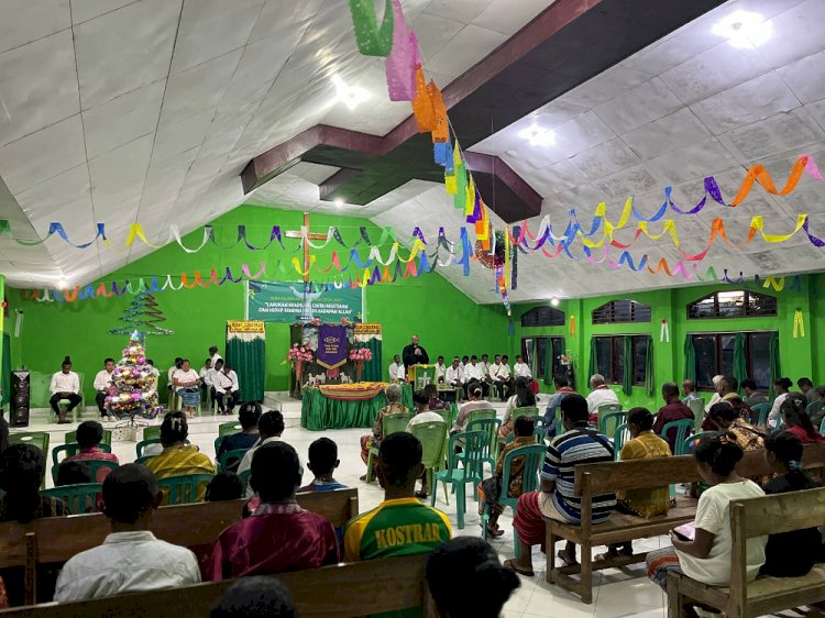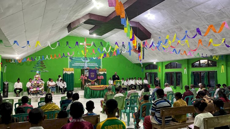 TTU, RedaksiDaerah.com - Wujud toleransi antarumat beragama, Satgas Pamtas RI-RDTL Sektor Barat Yonarhanud 2 Kostrad Pos Oepoli Sungai menghadiri prosesi peresmian dan pemasangan salib di Gereja GMIT Talitakum Taloi, Desa Netemnanu, Kecamatan Amfoang Timur, Kabupaten Kupang, Jumat (26/12/2025).