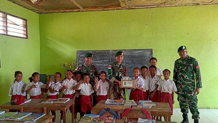 TTU, RedaksiDaerah.com - Dalam rangka memperingati Hari Pahlawan pada 10 November 2025 ini, Satgas Pamtas RI-RDTL Sektor Barat Yonarhanud 2 Kostrad melaksanakan kegiatan menjadi tenaga pendidik (Gadik) dan membagikan buku bacaan rohani ke seluruh sekolah yang tersebar di perbatasan RI-RDTL Sektor Barat, Kab. Kupang dan TTU, Senin (10/11/2025).
