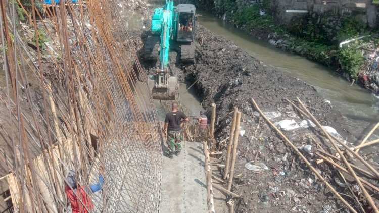 Surakarta -redaksidaerah.com Pembangunan talud sepanjang 40 meter dan tinggi 5 meter di Sungai Brojo, Kelurahan Pajang Kecamatan Laweyan yang merupakan sasaran fisik program TMMD Reguler ke-111 Kodim 0735/Surakarta ini mengharuskan dengan menggunakan alat berat.