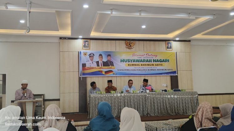 Tanah Datar – RedaksiDaerah.com — Aula Kantor Nagari Baringin, Sabtu (27/9/2025), menjadi saksi digelarnya Musyawarah Nagari (Musnag) Baringin yang membahas pertanggungjawaban Badan Usaha Milik Nagari (BUMNag) Baringin Saiyo Tahun Anggaran 2024 sekaligus pemilihan pengurus baru. Agenda ini digelar untuk memastikan keberlanjutan roda usaha BUMNag yang menjadi salah satu pilar ekonomi masyarakat nagari.