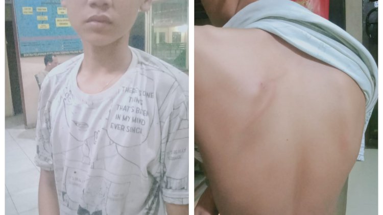 Akibat kejadian tersebut, korban mengalami luka lembam dibagian punggu akibat dicambuk pakai tali pinggang dibagian pundaknya.