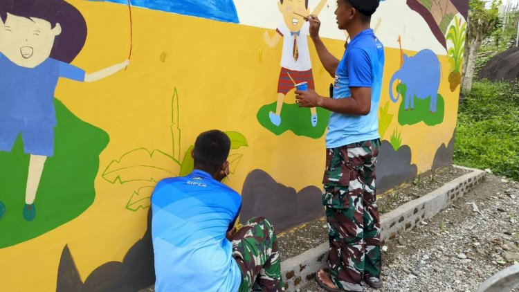 Sambil memegang kuas dan alat cat, para prajurit melukiskan tembok dengan penuh semangat, menciptakan lingkungan yang indah dan tentunya hal positif ini akan meningkatkan semangat belajar anak-anak di wilayah perbatasan.