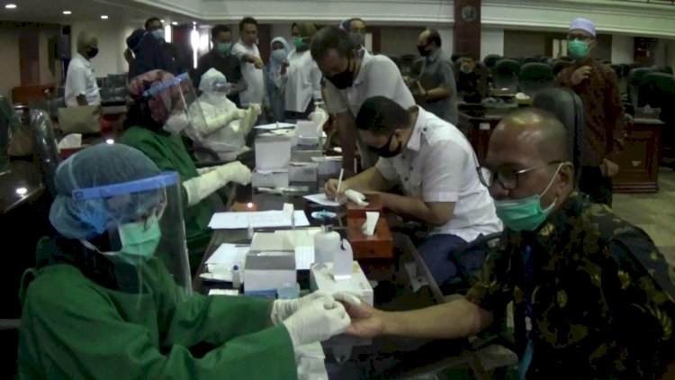 PADANG (SUMBAR) - Dalam memasuki masa new normal atau tatanan baru, DPRD Sumatera Barat melakukan pemeriksaan kesehatan dengan Rapid Test, bagi pegawai dan anggota DPRD, Selasa (17/6/20).