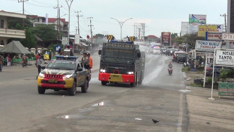 Tidak hanya itu, Kapolres juga mengerahkan kendaraan taktis Armored Water Canon (AWC) Polres Dharmasraya untuk membantu penyemprotan cairan Disinfektan disepanjang Jalan Lintas Sumatera Kec. Sungai Rumbai guna mencegah penyebaran virus Covid-19. Penyemprotan ini sendiri dibantu oleh Dinas Kesehatan yang menyediakan cairan disinfektan.