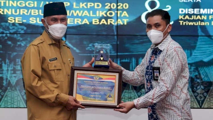 Kemarin Gubernur Sumbar, Buya Mahyeldi menerima plakat dan piagam penghargaan atas capaian standar tertinggi Laporan Keuangan Pemerintah Daerah (LKPD) berupa Opini Wajar Tanpa Pengecualian (WTP) selama lima kali berturut-turut sejak 2016 hingga 2020.