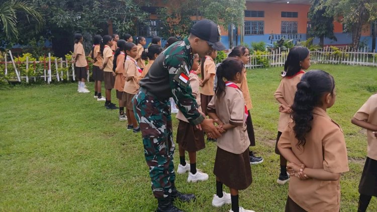 Belu, RedaksiDaerah.com - Satgas Pamtas RI–RDTL Sektor Timur Yonarmed 12 Kostrad melalui Pos Nunura melaksanakan kegiatan pengajaran di SDN Sekutren, Desa Tohe, Kecamatan Raihat, Kabupaten Belu, Provinsi NTT, Senin (9/2/2026). Kehadiran prajurit disambut antusias oleh para siswa dan guru sebagai bagian dari pembinaan teritorial sekaligus menanamkan nilai kedisiplinan sejak dini.