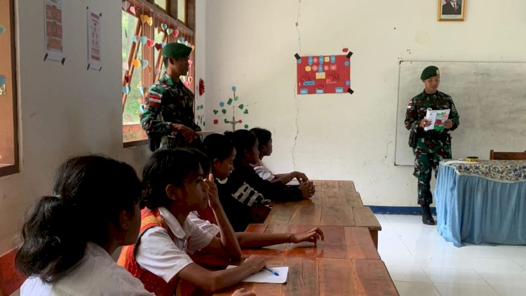 Belu, RedaksiDaerah.com — Satgas Pamtas RI–RDTL Sektor Timur Yonarmed 12 Kostrad melalui Pos Lakmars melaksanakan kegiatan pengajaran dan pendidikan kepada siswa Sekolah Dasar Katolik (SDK) Henes yang berlokasi di Desa Henes, Kecamatan Lamaknen Selatan, Kabupaten Belu, Sabtu (17/1/2026). Kegiatan ini merupakan bagian dari upaya pembinaan teritorial Satgas untuk mendukung peningkatan kualitas pendidikan di wilayah perbatasan.