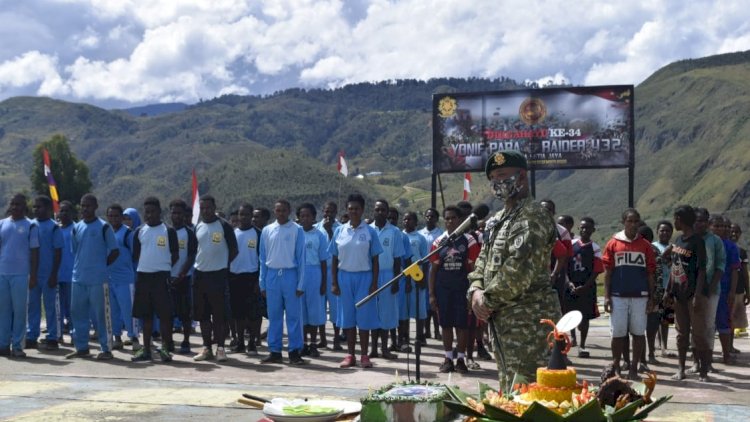 Acara ini dilaksanakan dengan doa bersama dan pemotongan tumpeng oleh Danyonif Para Raider 432 Kostrad. Dalam kesempatan kali ini juga hadir Kapolres Lanny Jaya, Kepala Dinas Pendidikan Kab. Lanny Jaya, Dansatgas Yonif 515, Sekda, Pabung, tokoh adat serta masyarakat sekitar.